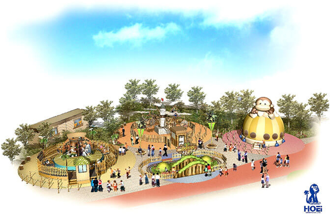 幼児から楽しめるエアードームやミニ汽車など、遊びがいっぱいのゾーンです。