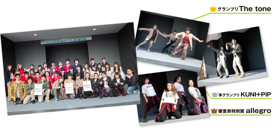 第1回となる今回は2月28日(日)に「DANCE BATTLE2016」と題し、日々ダンスに励む学生ダンスチームが参加し、寒さを吹き飛ばす熱いダンスを見せてくれ大変な盛り上がりを見せました。グランプリのチームには副賞として「ららぽーと共通お買いもの・お食事券」5万円分が、ゲスト審査員「スヌーピーJ」さんから進呈されました。皆様おめでとうございました!今後も様々なプログラムで学生の「夢の披露の場」を提供してまいります。「ららキャン」にどうぞご期待ください!